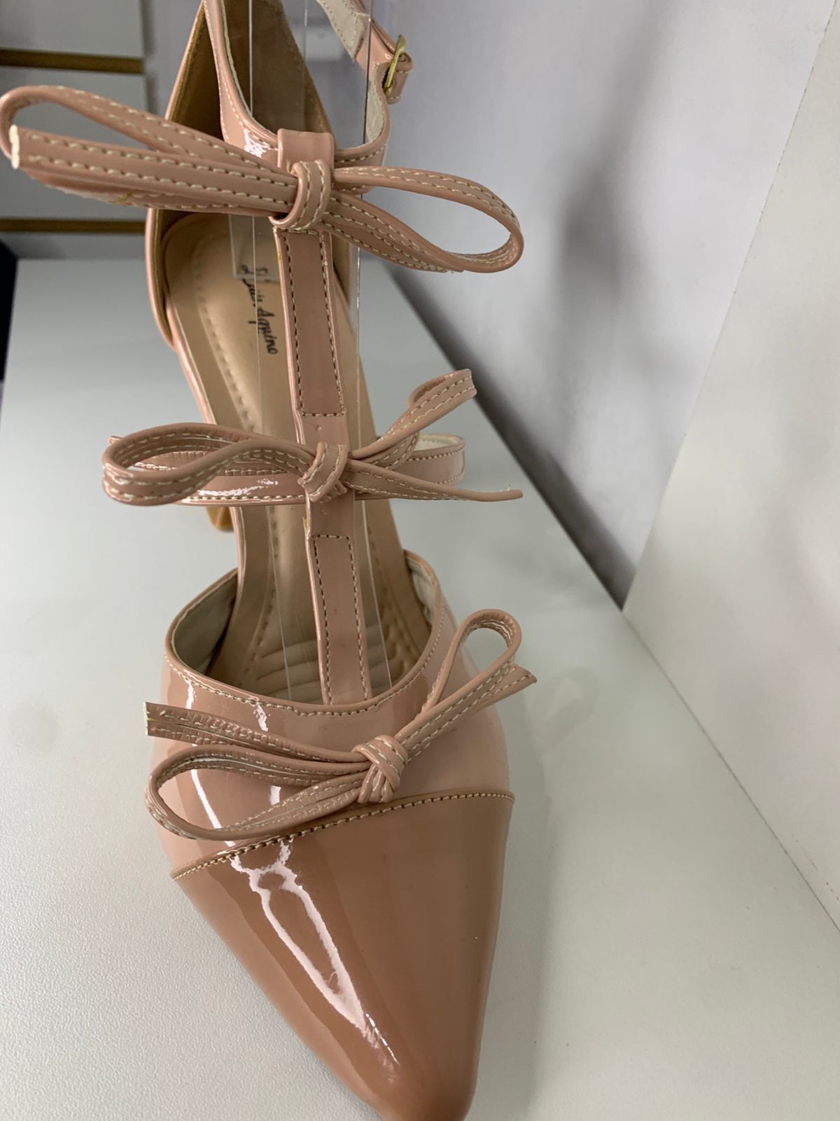 - Confeccionado no material verniz, com laço decorativo que valoriza o visual leve e confortável, perfeita para o dia a dia, combina com vestidos, saias, shorts e calças.