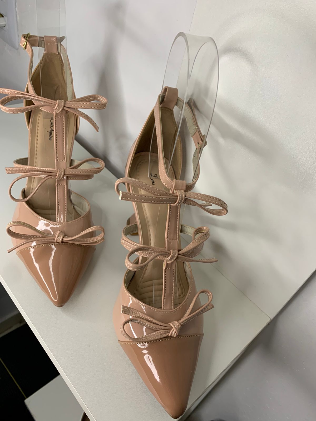 - Cor na frente bege e atras nude.